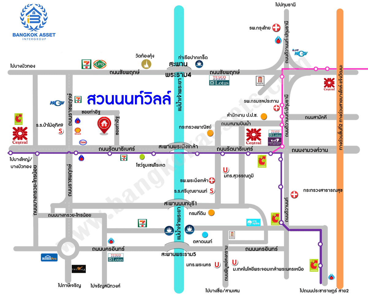 - ใกล้ห้างสรรพสินค้าเซ็นทรัล เวสต์เกต, เซ็นทรัล รัตนาธิเบศร์, เอสพลานาด, โลตัส