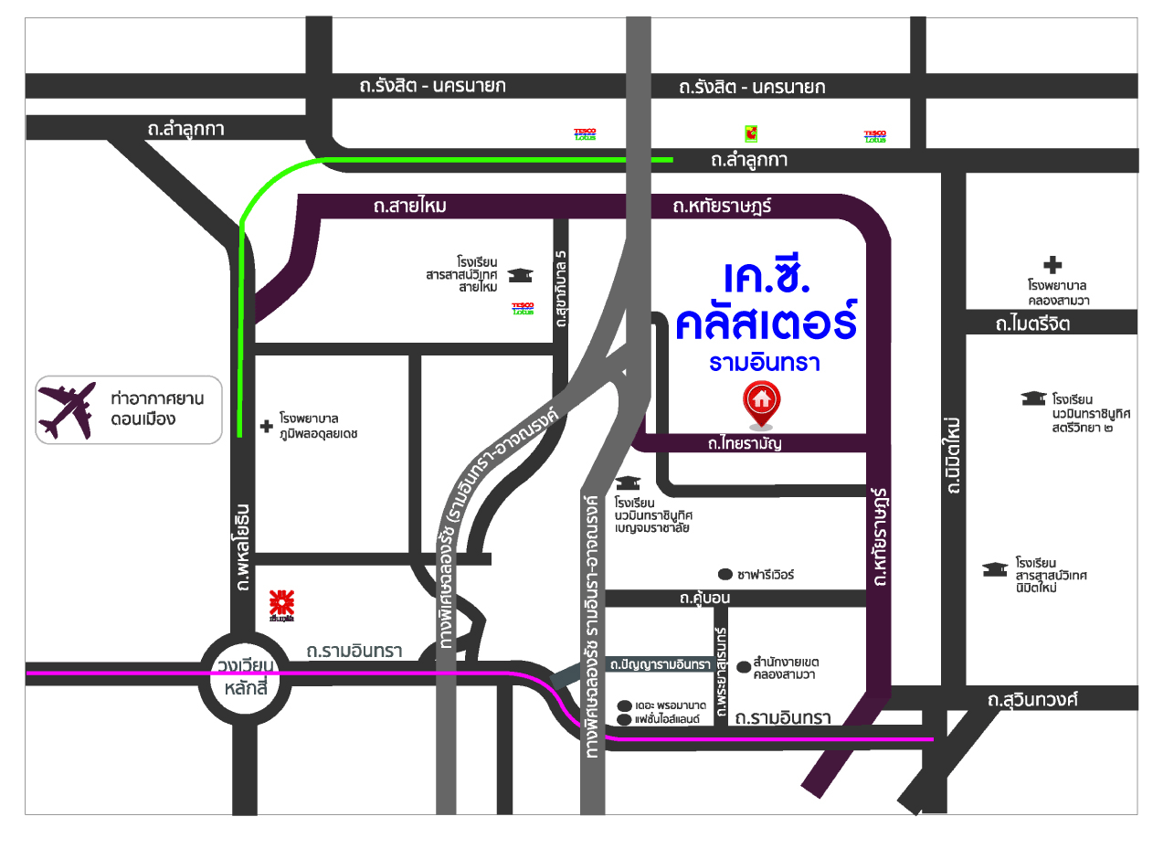 - โครงการตั้งอยู่บนถนนสายหลัก ถนนหทัยราษฎร์-รามอินทรา ถนนซอย11