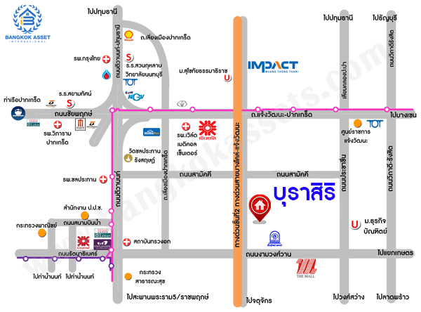 - ใกล้ห้างสรรพสินค้าเดอะมอลล์งามวงศ์วาน, พันธุ์ทิพย์ งามวงศ์วาน, โลตัส งามวงศ์วาน, บิ๊กซีแจ้งวัฒนะ, แม็คโครแจ้งวัฒนะ