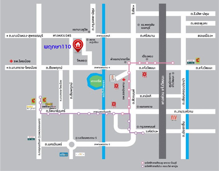 - ใกล้โรงพยาบาลชลประทาน โรงพยาบาลปทุมเวช โรงพยาบาลเกษมราษฎร์ พระนั่งเกล้า-ธนบุรี