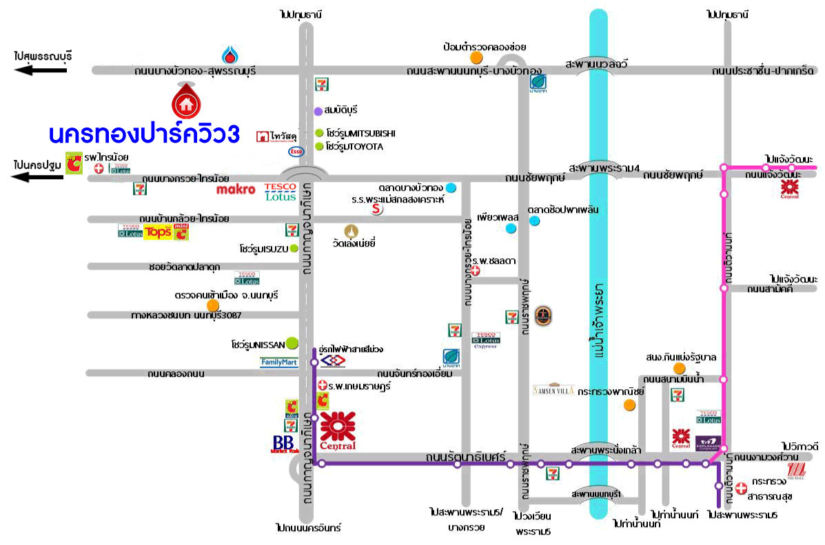 - ใกล้ห้างสรรพสินค้าเซ็นทรัลเวตเกตส์, อิเกีย บางใหญ่, แม็คโคร บางบัวทอง