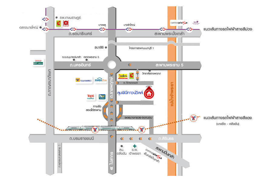 - โครงการตั้งอยู่บนถนนสายหลัก ถนนราชพฤกษ์-นครอินทร์