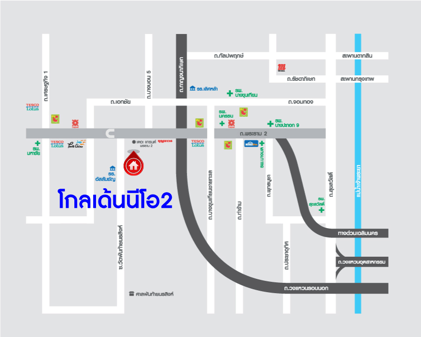 - โครงการตั้งอยู่บนถนนสายหลัก ถนนพระราม2