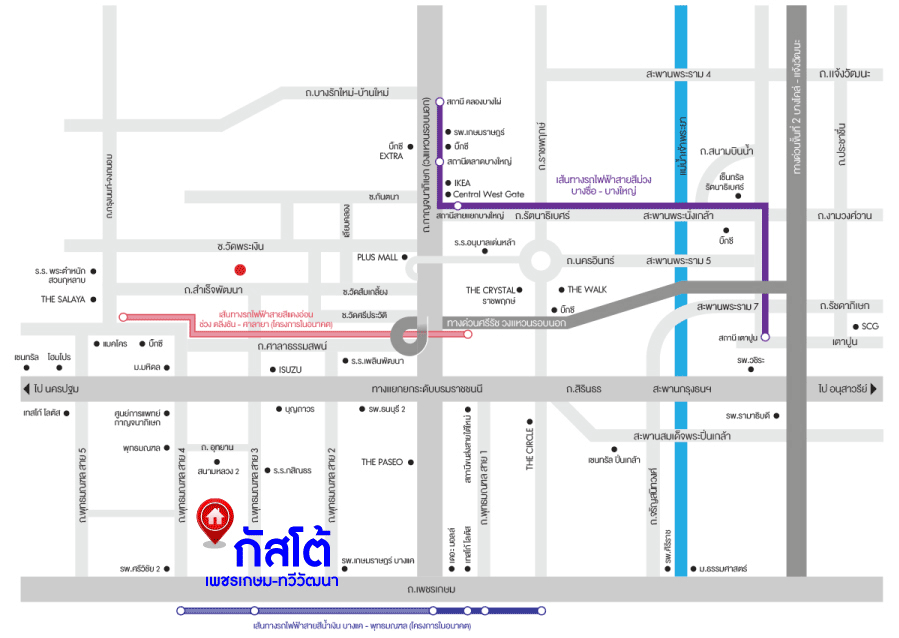 - ใกล้ห้างสรรพสินค้าเดอะมอลล์ บางแค, บิ๊กซี เพชรเกษม, Seacon บางแค