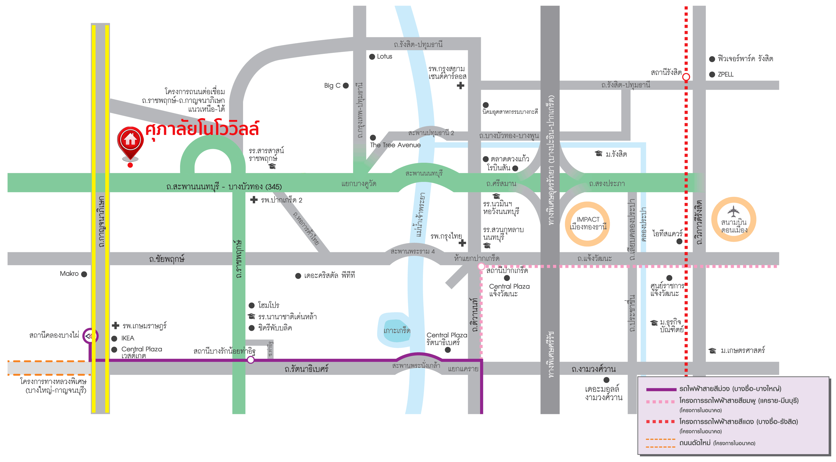 - โครงการตั้งอยู่บนถนนสายหลัก ถนนกาญจนาภิเษก ถนนซอย ถนน 345