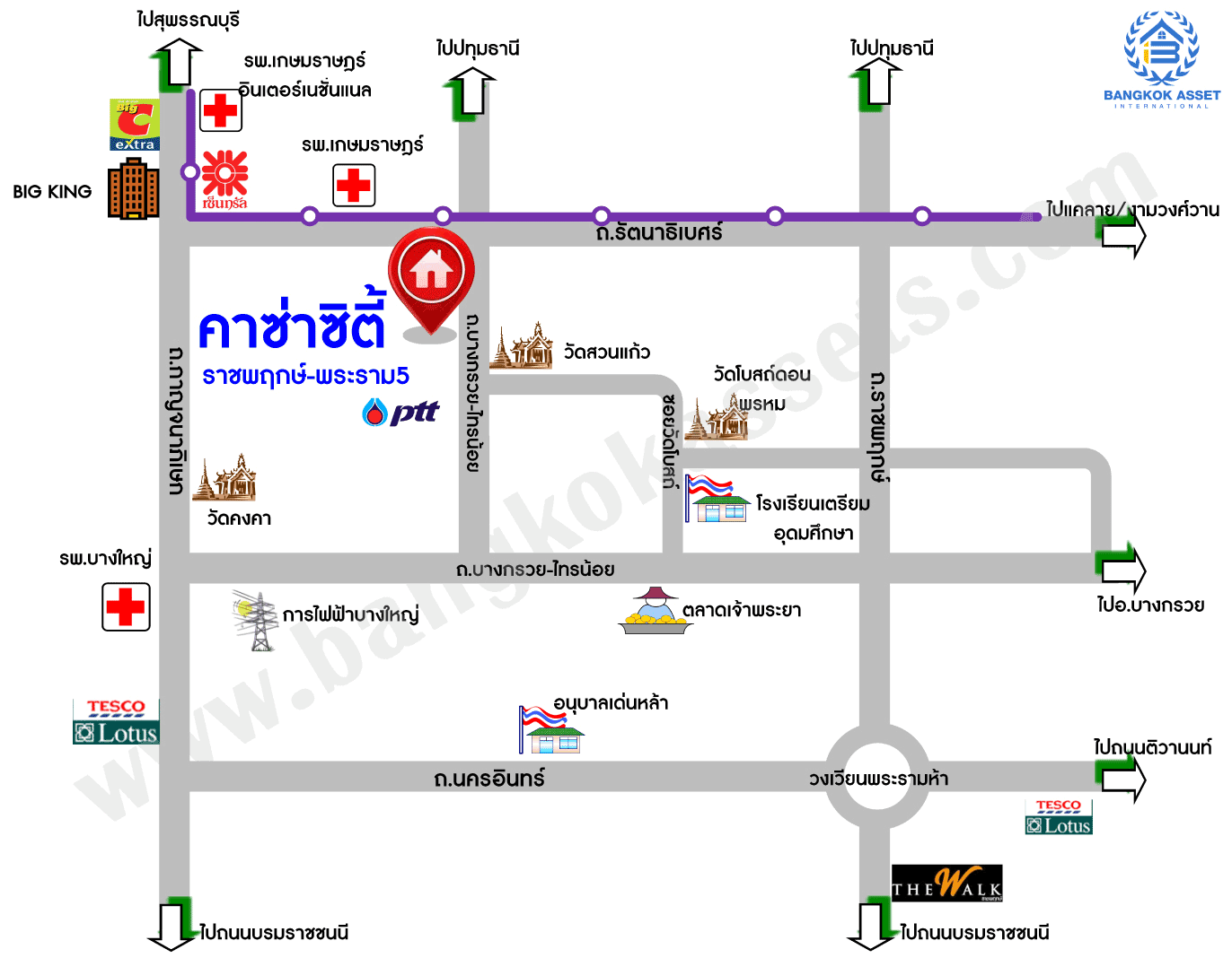 - ใกล้โรงพยาบาลโรงพยาบาลเกษม ราษฎร์ รัตนาธิเบศร์ โรงพยาบาลการุญเวช รัตนาธิเบศร์