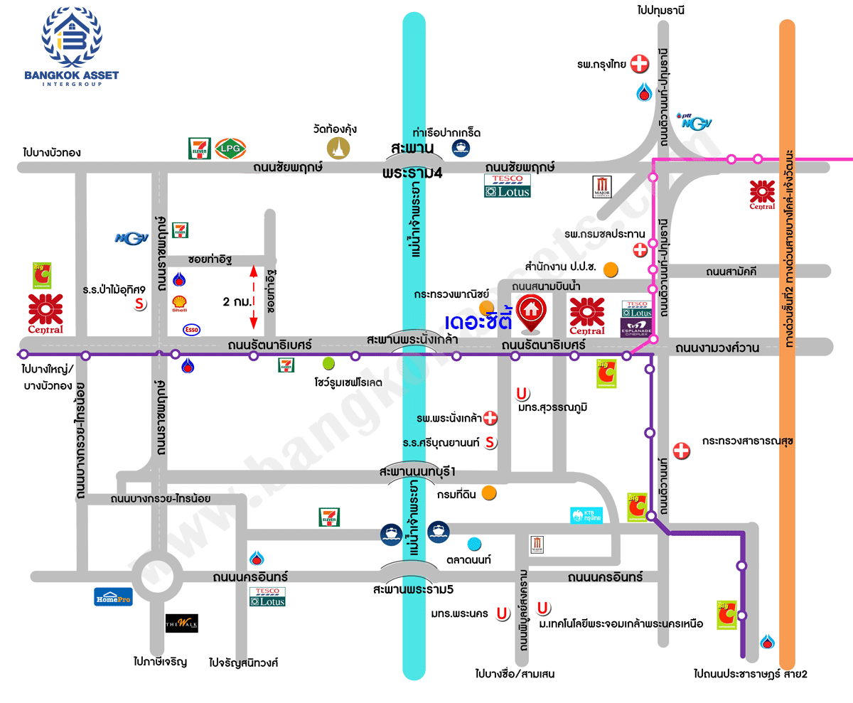 - โครงการตั้งอยู่ใกล้ ห้างสรรพสินค้าเซ็นทรัล เวสต์เกต, เซ็นทรัล รัตนาธิเบศร์, เดอะมอลล์งามวงศ์วาน