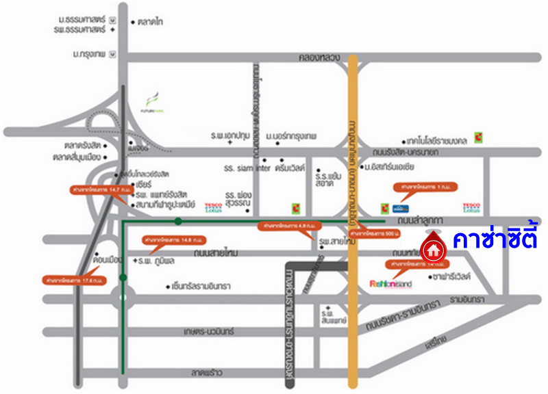 - โครงการตั้งอยู่บนถนนสายหลัก ถนนลำลูกกา