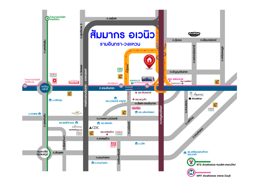 - โครงการตั้งอยู่บนถนนสายหลัก ถนนรามอินทรา