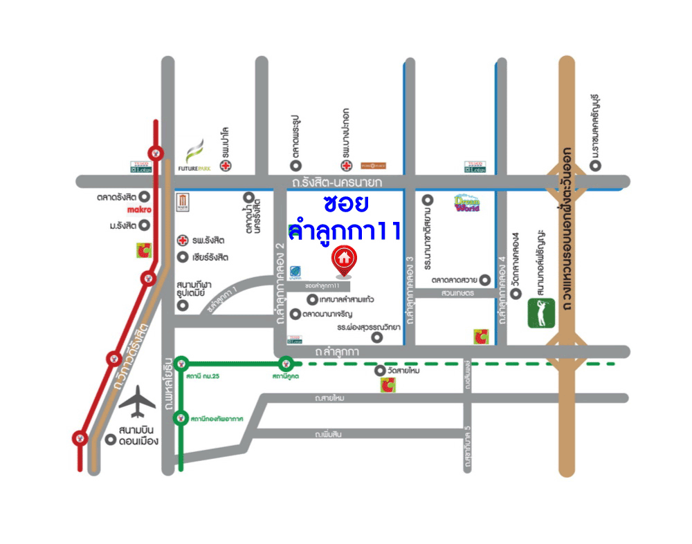 - ใกล้ห้างสรรพสินค้าโลตัส ลำลูกกาคลอง 2