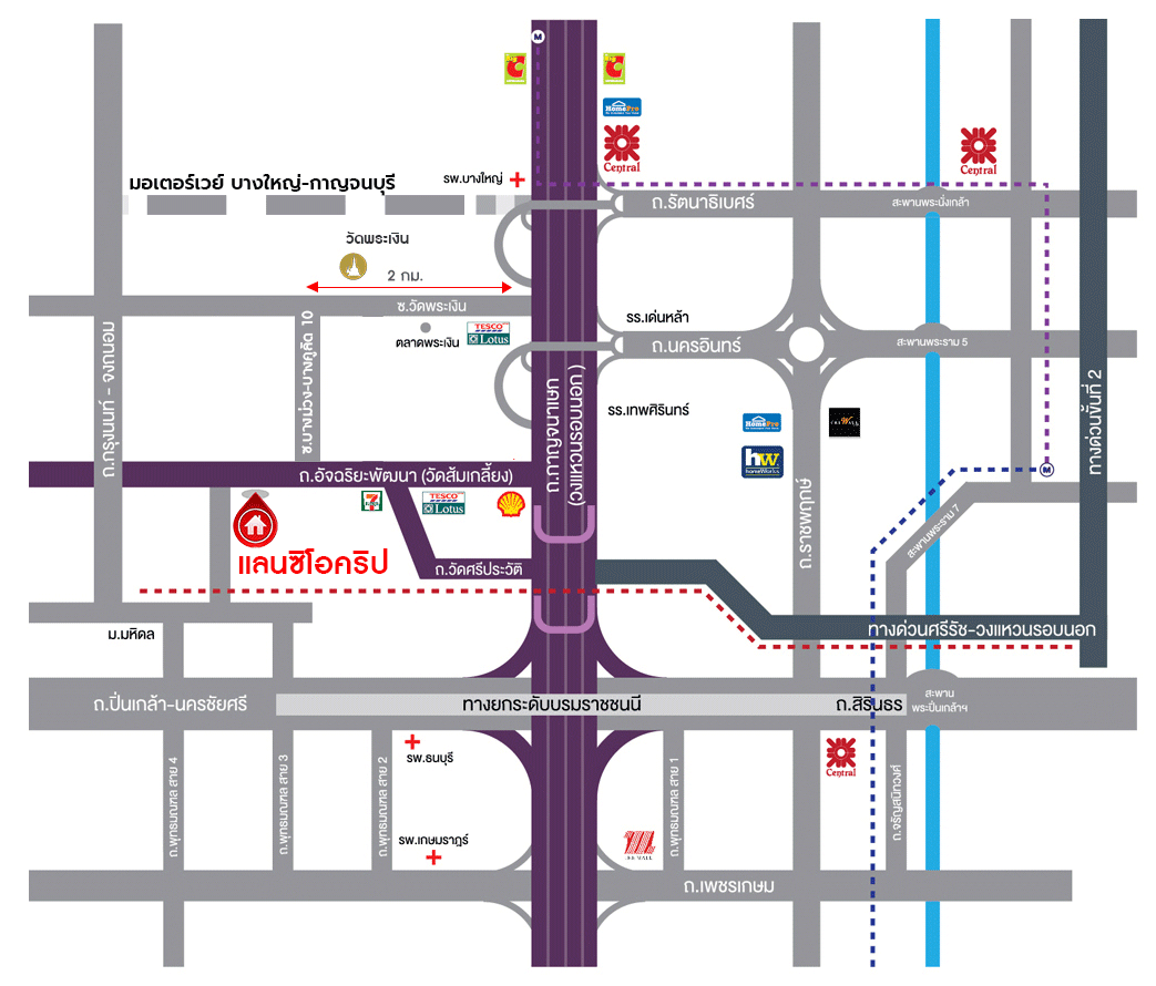 - โครงการตั้งอยู่บนถนนสายหลัก ได้แก่ ถนนกาญจนาภิเษก