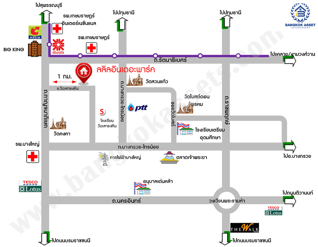 - ใกล้โรงพยาบาลเกษมราษฎร์ รัตนาธิเบศร์, โรงพยาบาลธนบุรี2, โรงพยาบาลบางใหญ่