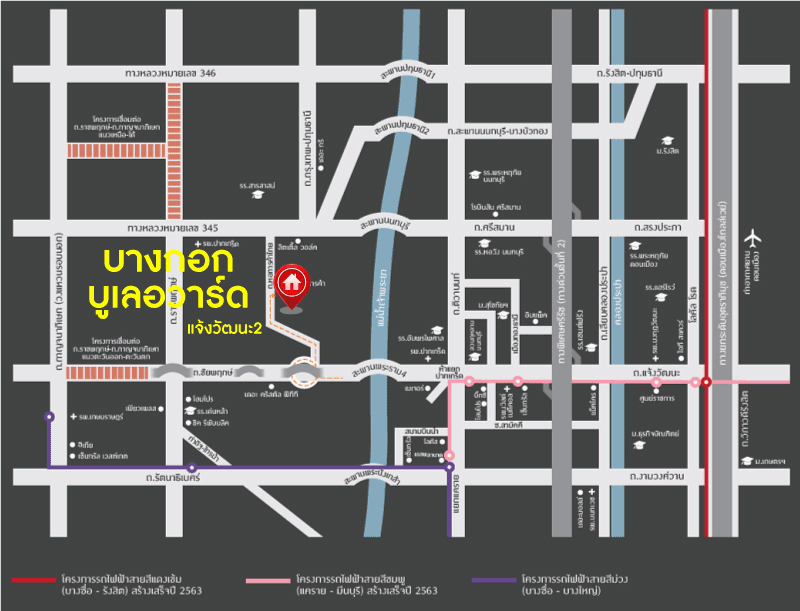 - หน้าโครงการห่างจากถนนใหญ่ 500 เมตร ถนนชัยพฤกษ์