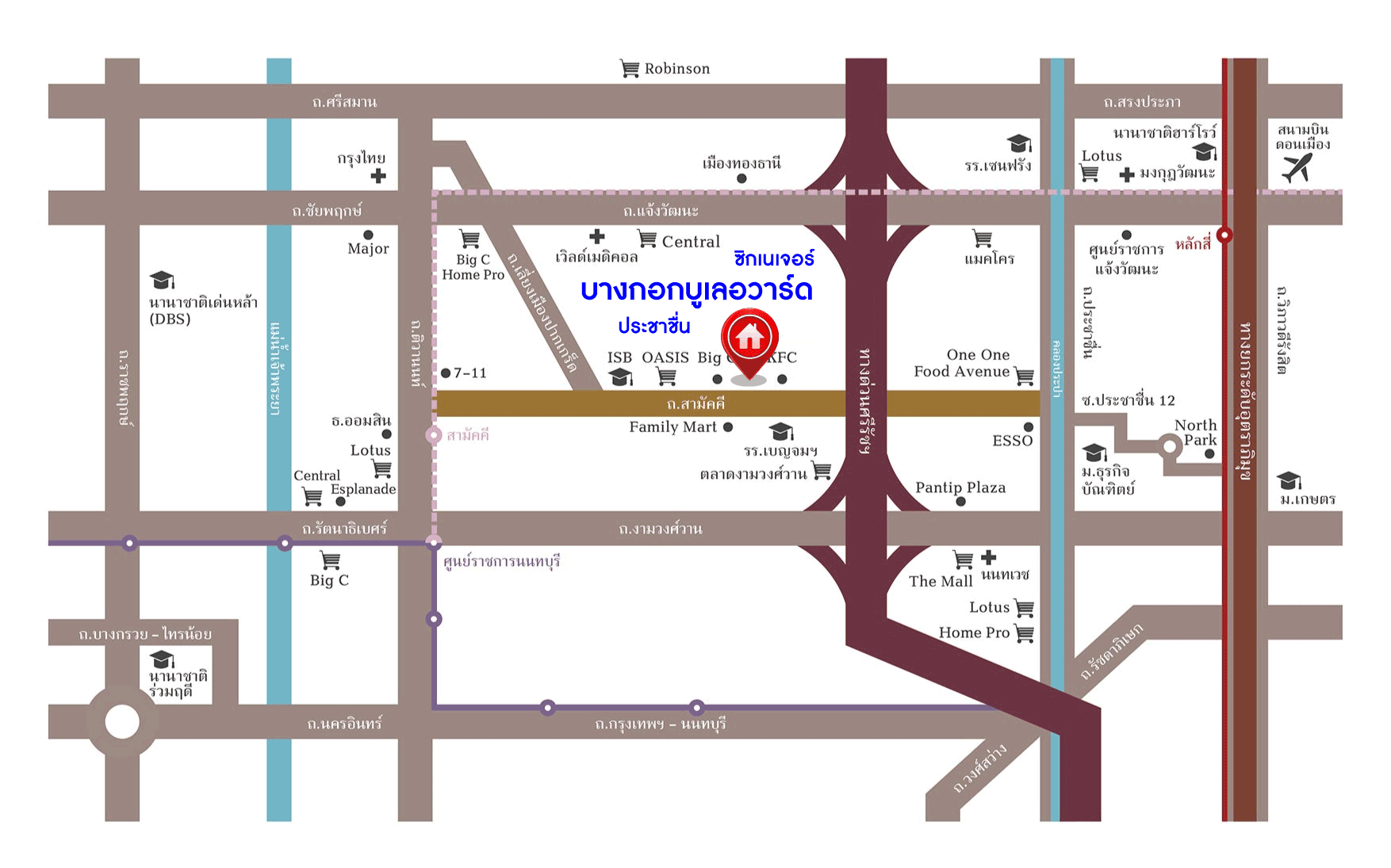 - ใกล้ห้างสรรพสินค้าเดอะมอลล์ งามวงศ์วาน , เซ็นทรัลแจ้งวัฒนะ