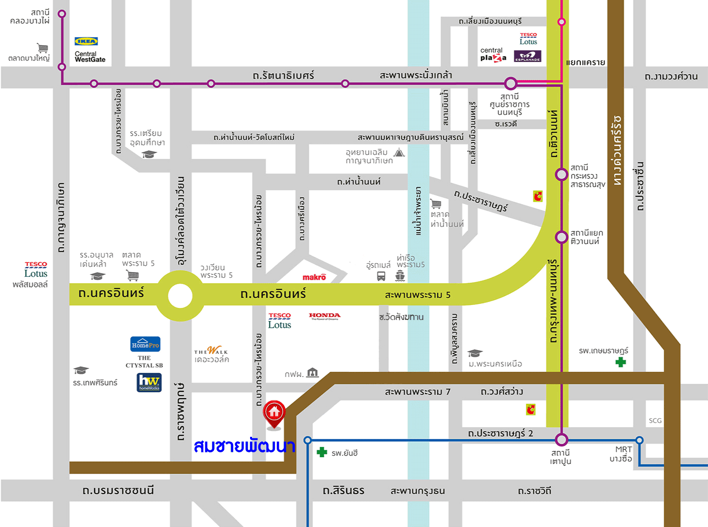 - ใกล้ห้างสรรพสินค้าเซ็นทรัลปิ่นเกล้า