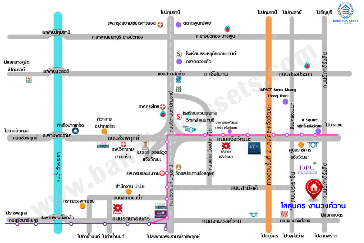 - โครงการตั้งอยู่บนถนนสายหลัก ถนนงามวงศ์วาน ถนนซอย งามวงศ์วาน47
