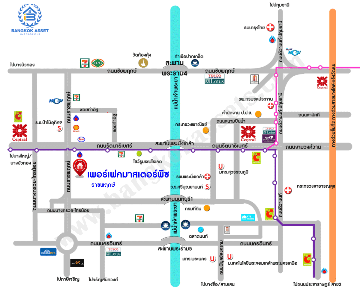 - ใกล้ห้างสรรพสินค้าเซ็นทรัลรัตนาธิเบศร์, เซ็นทรัลเวสต์เกต, บิ๊กซี รัตนาธิเบศร์, อิเกีย บางใหญ่