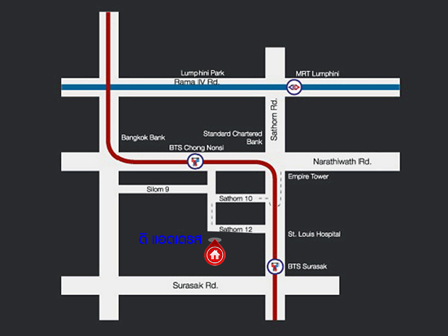 - หน้าโครงการห่างจากถนนใหญ่ 500 เมตร ถนนสาทร