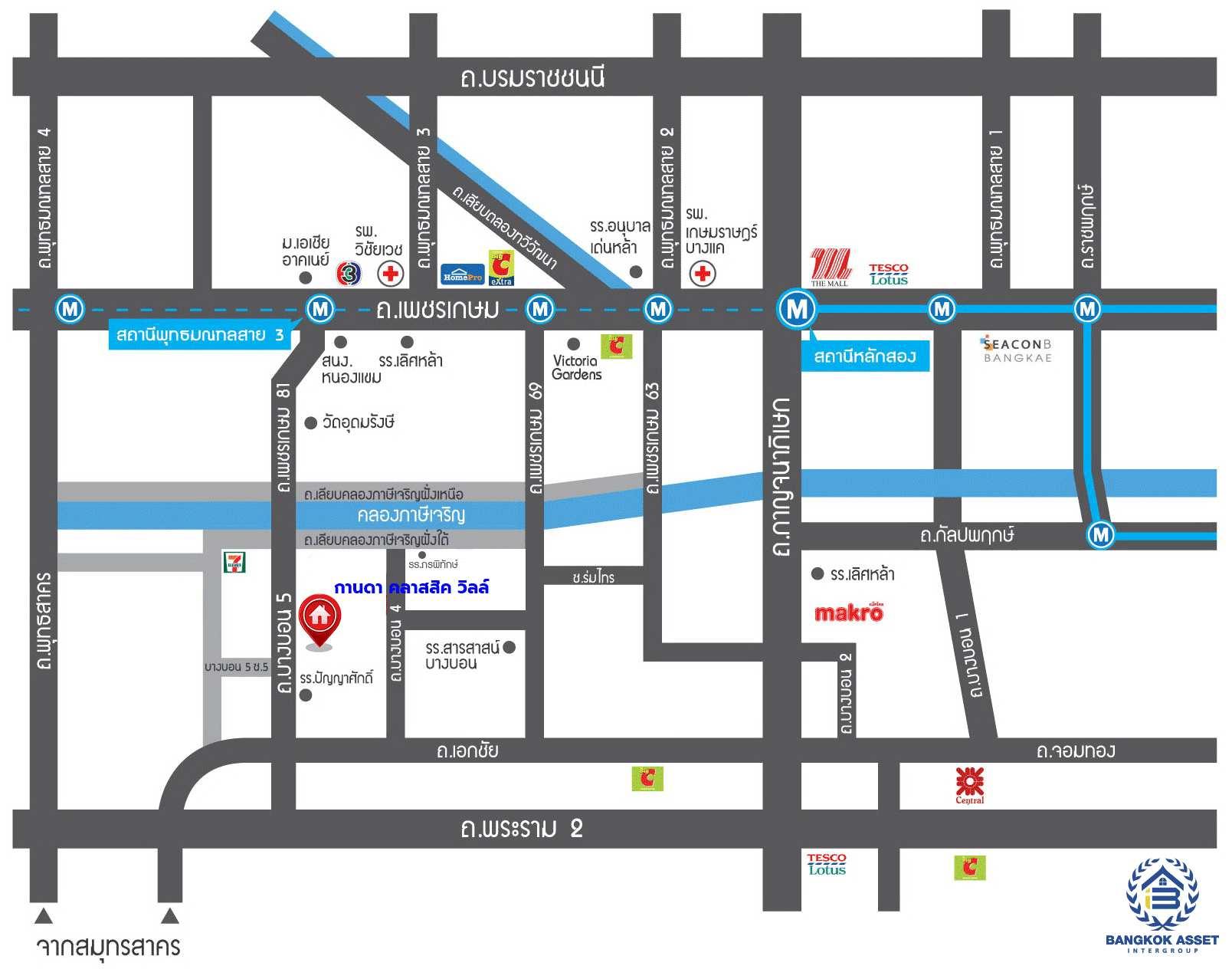 - ใกล้ห้างสรรพสินค้าเดอะมอลล์ บางแค, เซนทรัลพระราม2, บิ๊กซี เพชรเกษม