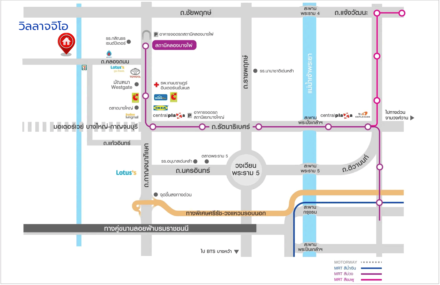 - ใกล้ห้างสรรพสินค้าเซ็นทรัล เวสต์เกต, อิเกีย บางใหญ่, โฮมโปร ราชพฤกษ์ ,พลัสมอลล์ ,บิ๊กซี บางใหญ่