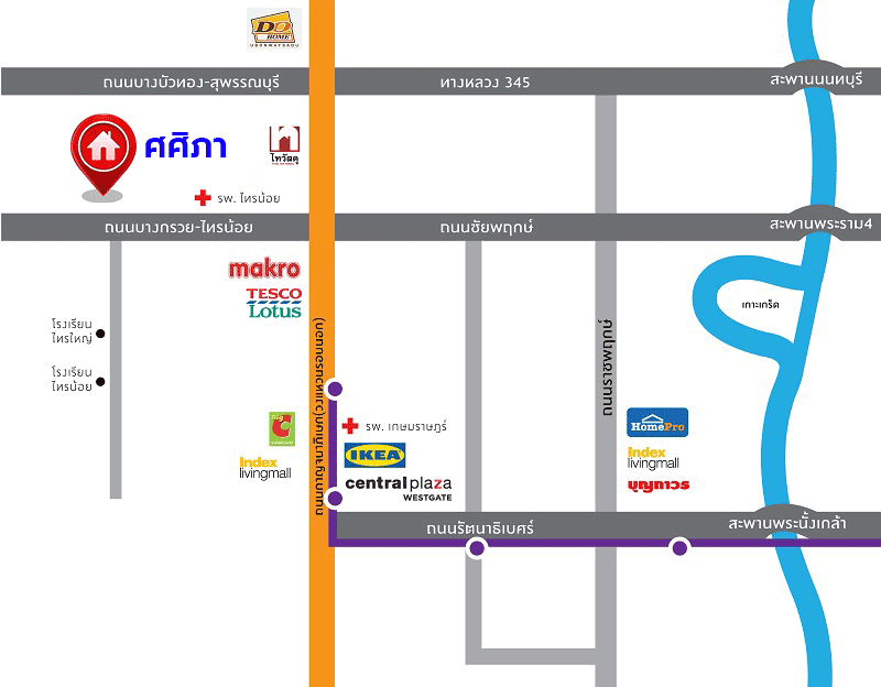 - ใกล้ห้างสรรพสินค้าเซ็นทรัลเวสต์เกต