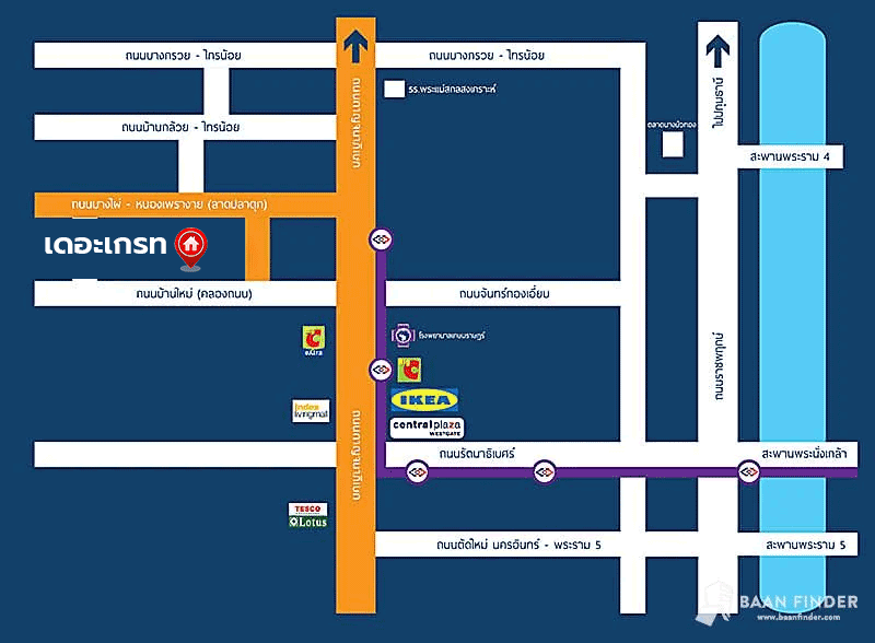 - ใกล้ห้างสรรพสินค้าBig C, โฮมโปร, Index mall, Central west gate, Ikea Bangyai