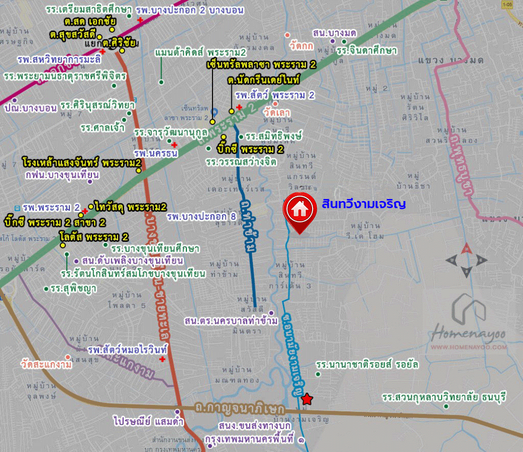 - โครงการตั้งอยู่บนถนนสายหลัก ถนนพระราม2-บางขุนเทียน ซอยอนามัยงามเจริญ 27