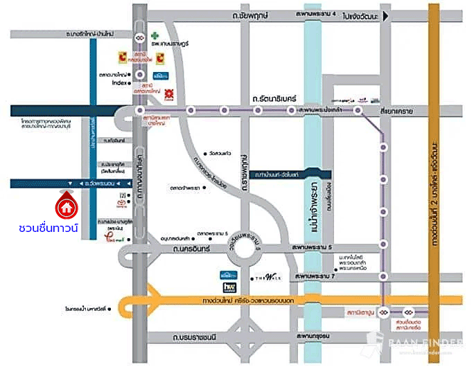 - โครงการตั้งอยู่บนถนนสายหลัก ถนนกาญจนาภิเษก ถนนซอย วัดพระนอน