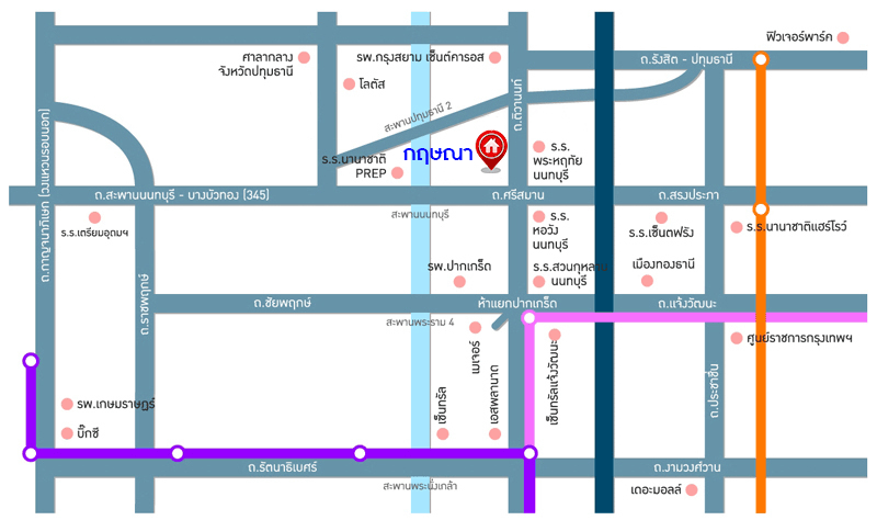 - ใกล้โรงเรียนสวนกุหลาบวิทยาลัย นนทบุรี, โรงเรียนนวมินทราชินูทิศ หอวัง นนทบุรี, โรงเรียนพระหฤทัย นนทบุรี