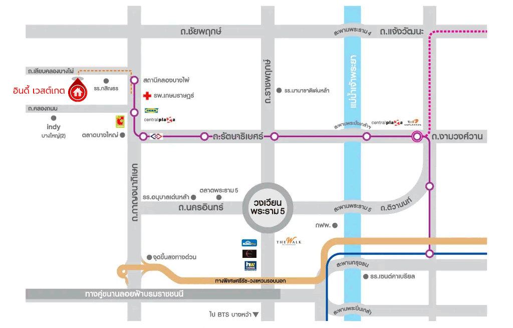 - ใกล้ห้างสรรพสินค้าCentral Westgate, Big C Extra บางใหญ่