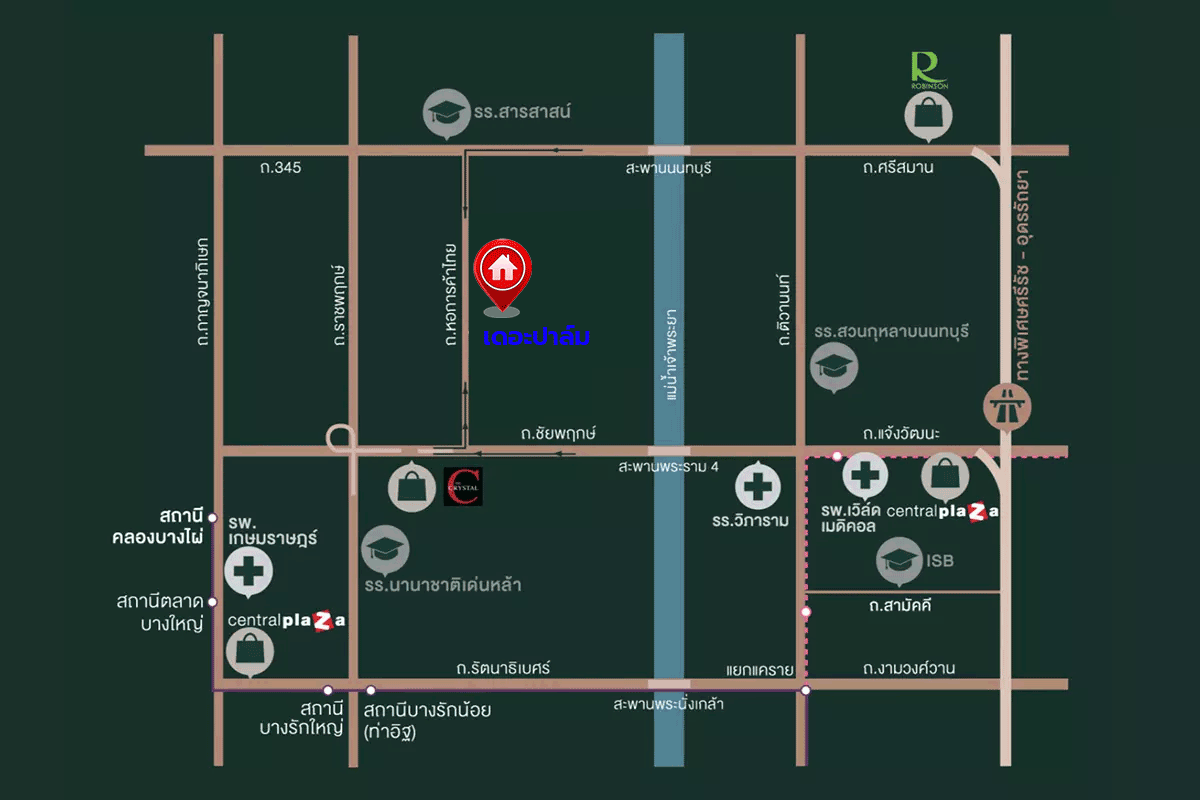 - ใกล้ห้างสรรพสินค้าเมเจอร์ ฮอลลีวูด ปากเกร็ด, เซ็นทรัล แจ้งวัฒนะ, โฮมโปร ชัยพฤกษ์