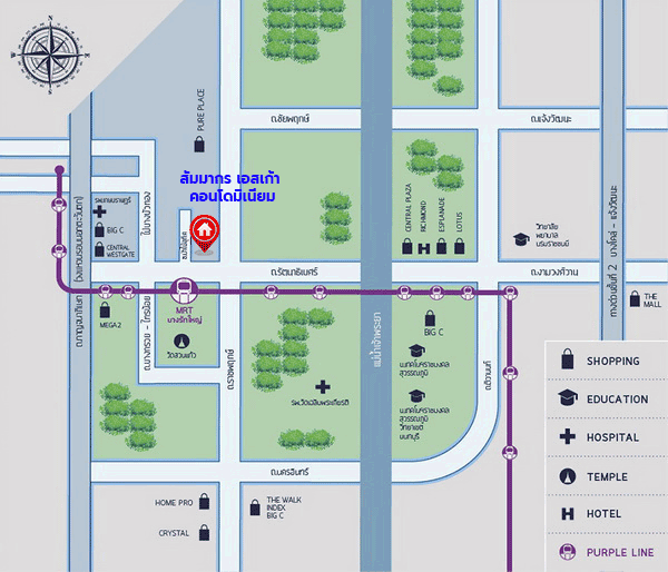 - ใกล้ห้างสรรพสินค้าเซ็นทรัลเวสต์เกต, อิเกีย บางใหญ่, เดอะสแควร์ บางใหญ่, โลตัส บางใหญ่, โรบินสัน ไลฟ์ไตล์ ราชพฤกษ์