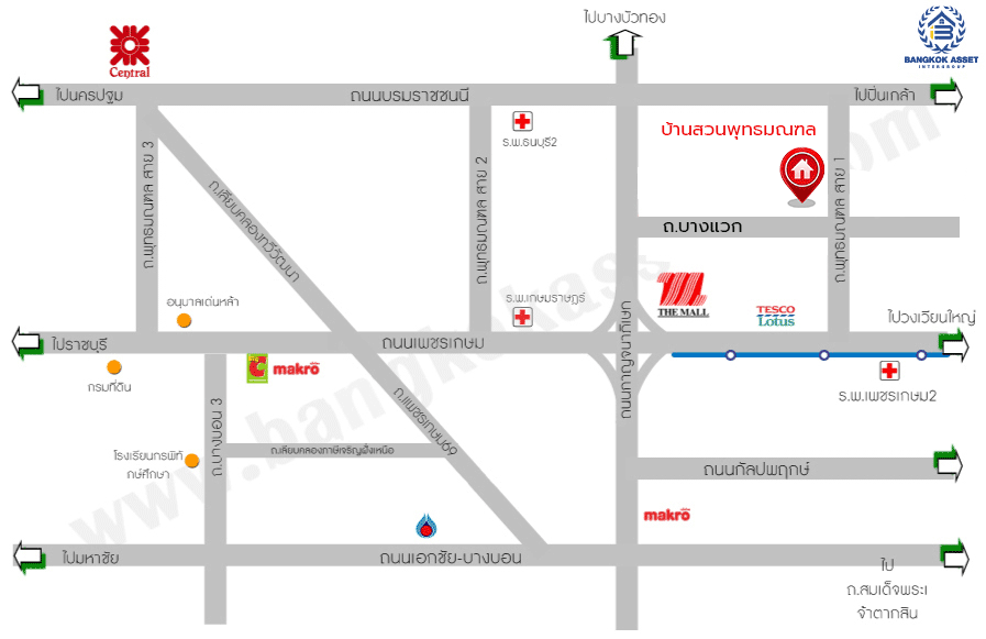 - ใกล้ห้างสรรพสินค้าเดอะมอลล์ บางแค, เซ็นทรัล ปิ่นเกล้า, พาซิโอ้ กาญจนาฯ, โลตัส บางแค