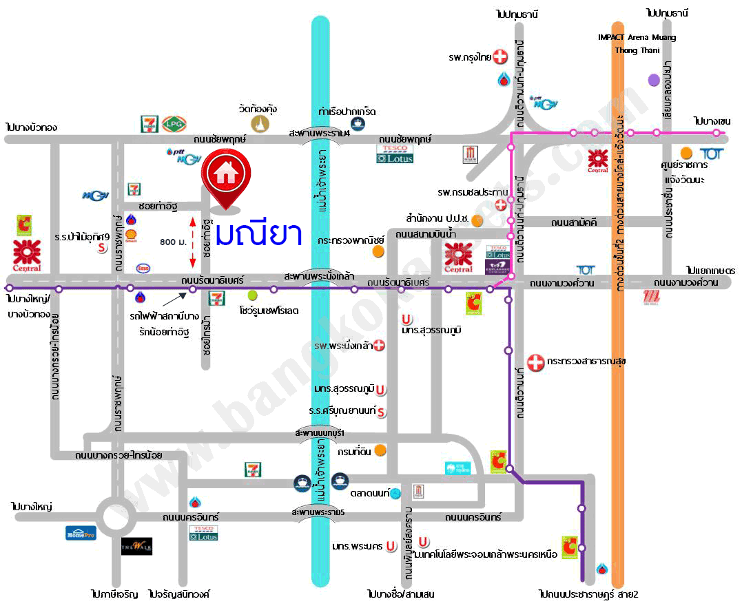 - ใกล้โครงการรถไฟฟ้าสายสีม่วง "สถานีบางรักน้อยท่าอิฐ", "สถานีไทรม้า"