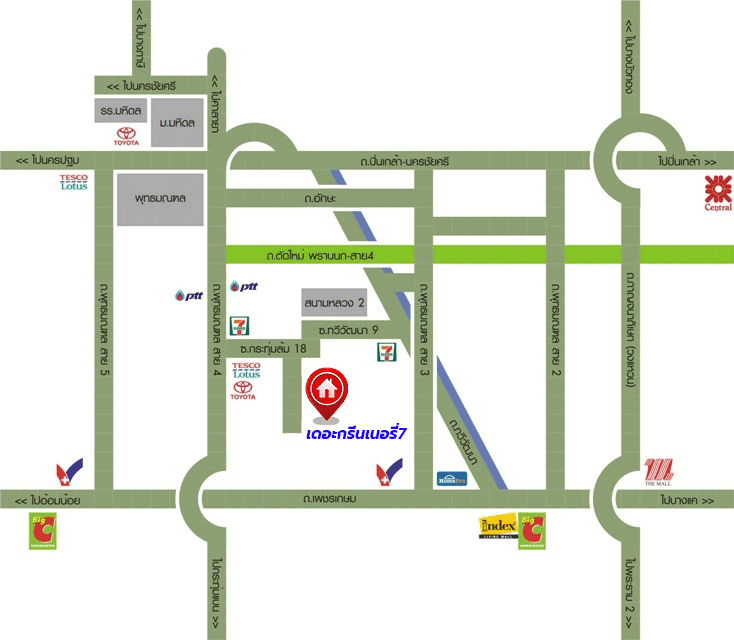 - ใกล้ห้างสรรพสินค้า Image Mall, เซ็นทรัล ศาลายา, ไทวัสดุ, แม็คโคร ศาลายา