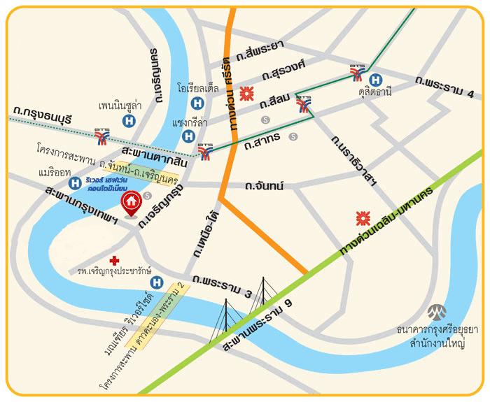 - โครงการตั้งอยู่บนถนนสายหลัก ถนนเจริญกรุง ถนนซอย เจริญกรุง 76/1