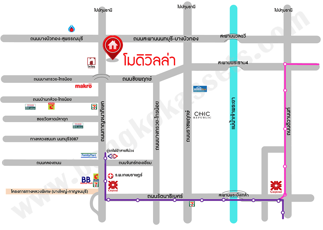 - ใกล้ห้างสรรพสินค้าเซ็นทรัลเวสต์เกต, บิ๊กซีเอ็กซ์ตร้า บางใหญ่, โลตัส บางบัวทอง, แม็คโคร บางบัวทอง, ไทวัสดุ ชัยพฤกษ์