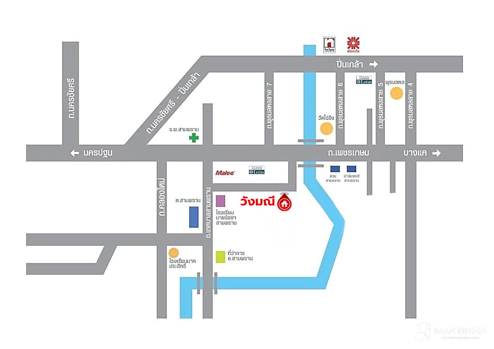 ทาวน์เฮ้าส์มือสองนครปฐม โครงการ วังมณี เพชรเกษม เนื้อที่ 16 ตร.ว. พื้นที่ใช้สอย 90 ตร.ม. ฟังก์ชัน 2 ห้องนอน 1 ห้องน้ำ 1 ที่จอดรถ บนทำเลเดินทางสะดวก เชื่อมต่อ ถนนกาญจนาภิเษก, ถนนรัตนาธิเบศร์ ใกล้รถไฟฟ้าสายสีม่วง "สถานีตลาดบางใหญ่" และจุดขึ้นทางด่วน "ศรีรัช"