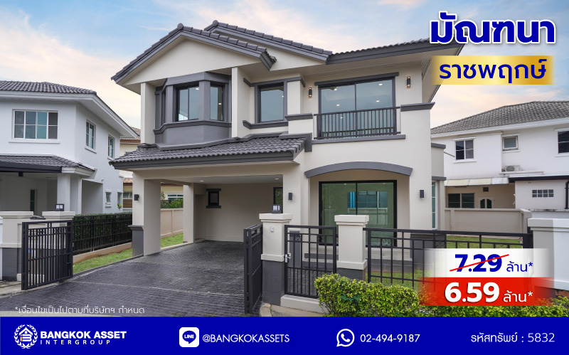 ขาย - บ้านมือสองตกแต่งใหม่ แบรนด์ LH โครงการ มัณฑนา ราชพฤกษ์ เนื้อที่ 58.5 ตร.ว. พื้นที่ใช้สอย 177.21 ตร.ม. ฟังก์ชัน 3 ห้องนอน 3 ห้องน้ำ จอดรถได้ 2 คัน พร้อมพื้นที่รอบบ้านกว้างขวาง Facilities ตอบโจทย์ทุกกิจกรรม บนทำเลใกล้วงเวียนพระราม5 เซ็นทรัลเวสต์เกต และรถไฟฟ้าสายสีม่วง "สถานีบางรักน้อยท่าอิฐ"