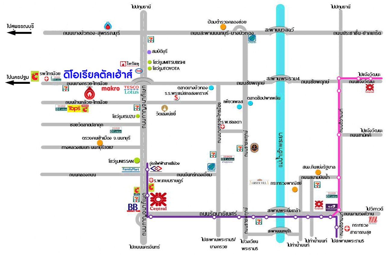 - โครงการตั้งอยู่บนถนนสายหลัก ถนนบางกรวย-ไทรน้อย ซอยโรงหมี่