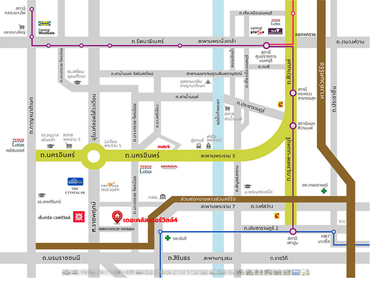 - โครงการตั้งอยู่บนถนนสายหลัก ถนนราชพฤกษ์ ถนนซอย บางกรวย-จงถนอม