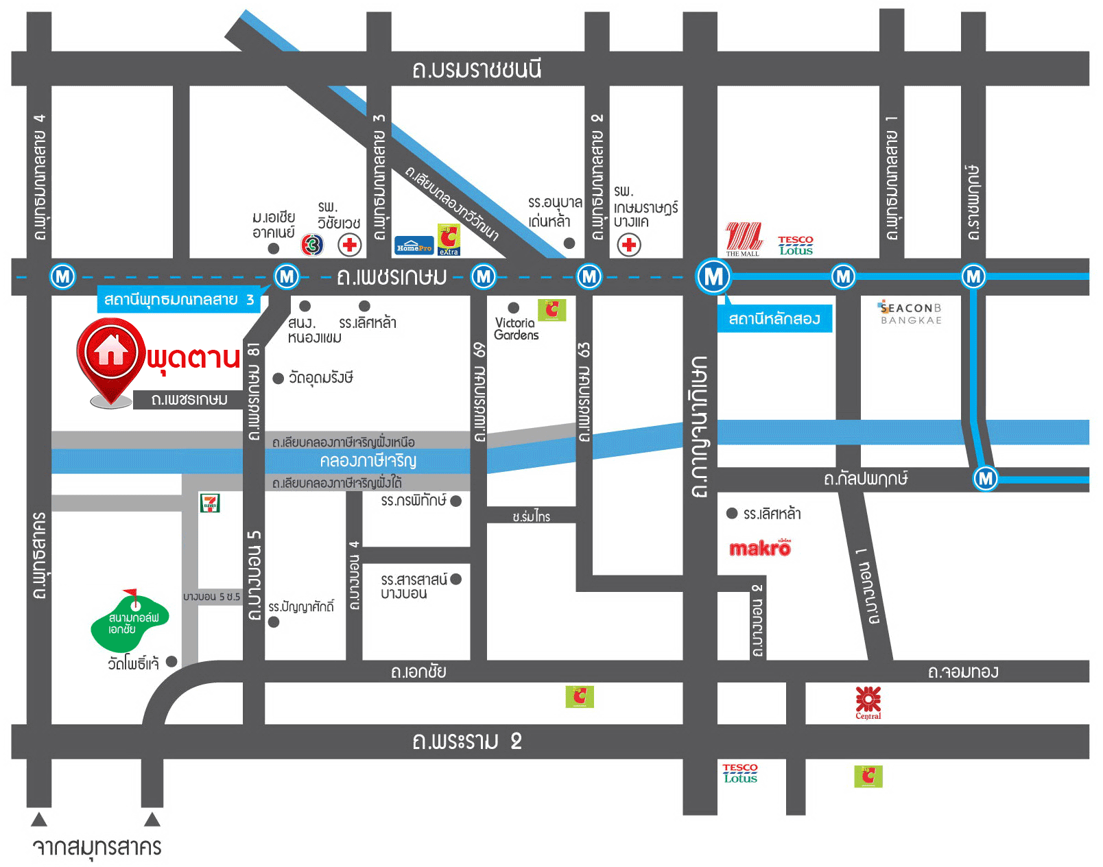 - ใกล้ห้างสรรพสินค้าBig C เพชรเกษม, HomePro เพชรเกษม, เดอะมอลล์ บางแค, ซีคอน บางแค