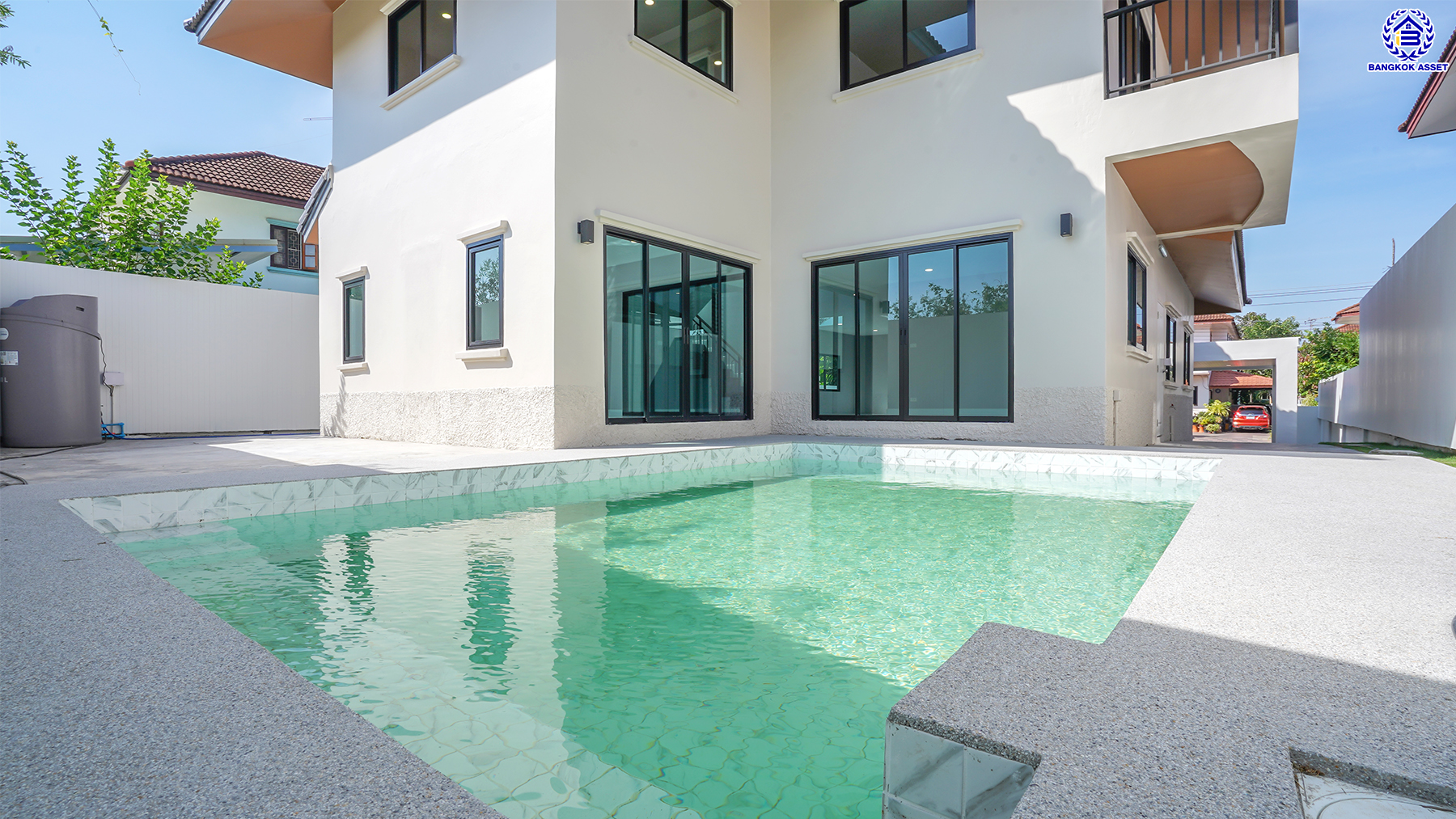 ขาย - บ้านมือสองตกแต่งใหม่ โครงการ เมืองเอก โครงการ8 วิภาวดี-รังสิต บ้านเดี่ยวหลังใหญ่ บนเนื้อที่ 107.3 ตร.ว. พื้นที่ใช้สอยเยอะถึง 455 ตร.ม. บรรยากาศเป็นส่วนตัว พร้อมมีสระว่ายน้ำส่วนตัว ฟังก์ชัน 4 ห้องนอน 4 ห้องน้ำ 1 ห้องอเนกประสงค์ จอดรถได้ 2 คัน สุดยอดทำเล เชื่อมต่อทุกการเดินทาง ใกล้จุดขึ้นทางด่วน "ศรีสมาน" และมหาวิทยาลัยรังสิต
