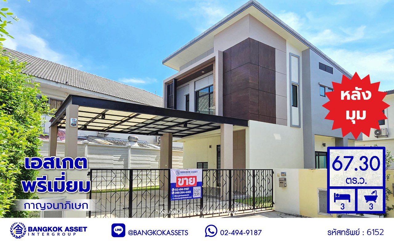 ขาย - บ้านเดี่ยวมือสองนนทบุรี โครงการ เอสเกต พรีเมี่ยม-กาญจนาภิเษก หลังมุม เนื้อที่ 67.30 ตร.ว. พื้นที่ใช้สอย 160 ตร.ม. ฟังก์ชัน 3 ห้องนอน 2 ห้องน้ำ 2 ที่จอดรถ บนทำเลเดินทางสะดวก เชื่อมต่อถนนกาญจนาภิเษก, ถนนนครอินทร์, ถนนรัตนาธิเบศร์ ใกล้รถไฟฟ้าสายสีม่วง "สถานีตลาดบางใหญ่" และจุดขึ้นทางด่วน "ศรีรัช"