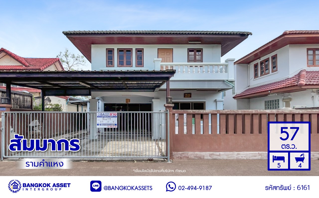 ขาย - บ้านเดี่ยวมือสอง โครงการ สัมมากร รามคำแหง บนเนื้อที่ 57 ตร.ว. พื้นที่ใช้สอย 200 ตร.ม. ฟังก์ชัน 5 ห้องนอน 4 ห้องน้ำ 2 ที่จอดรถ พร้อมของแถมฟรีอีกหลากหลายรายการ บนทำเลเยี่ยมเชื่อมต่อถนนรามคำแหง, ถนนศรีนครินทร์-ร่มเกล้า, ถนนร่มเกล้า ใกล้รถไฟฟ้าสายสีส้ม "สถานีสัมมากร" และทางด่วน "มอเตอร์เวย์-สุวรรณภูมิ"