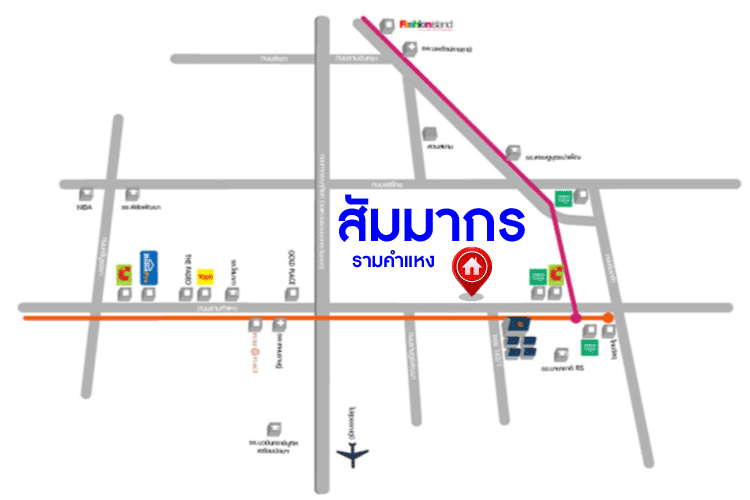 - โครงการตั้งอยู่บนถนนสายหลัก ถนนรามคำแหง ถนนซอย สัมมากร 1 ซอย 58